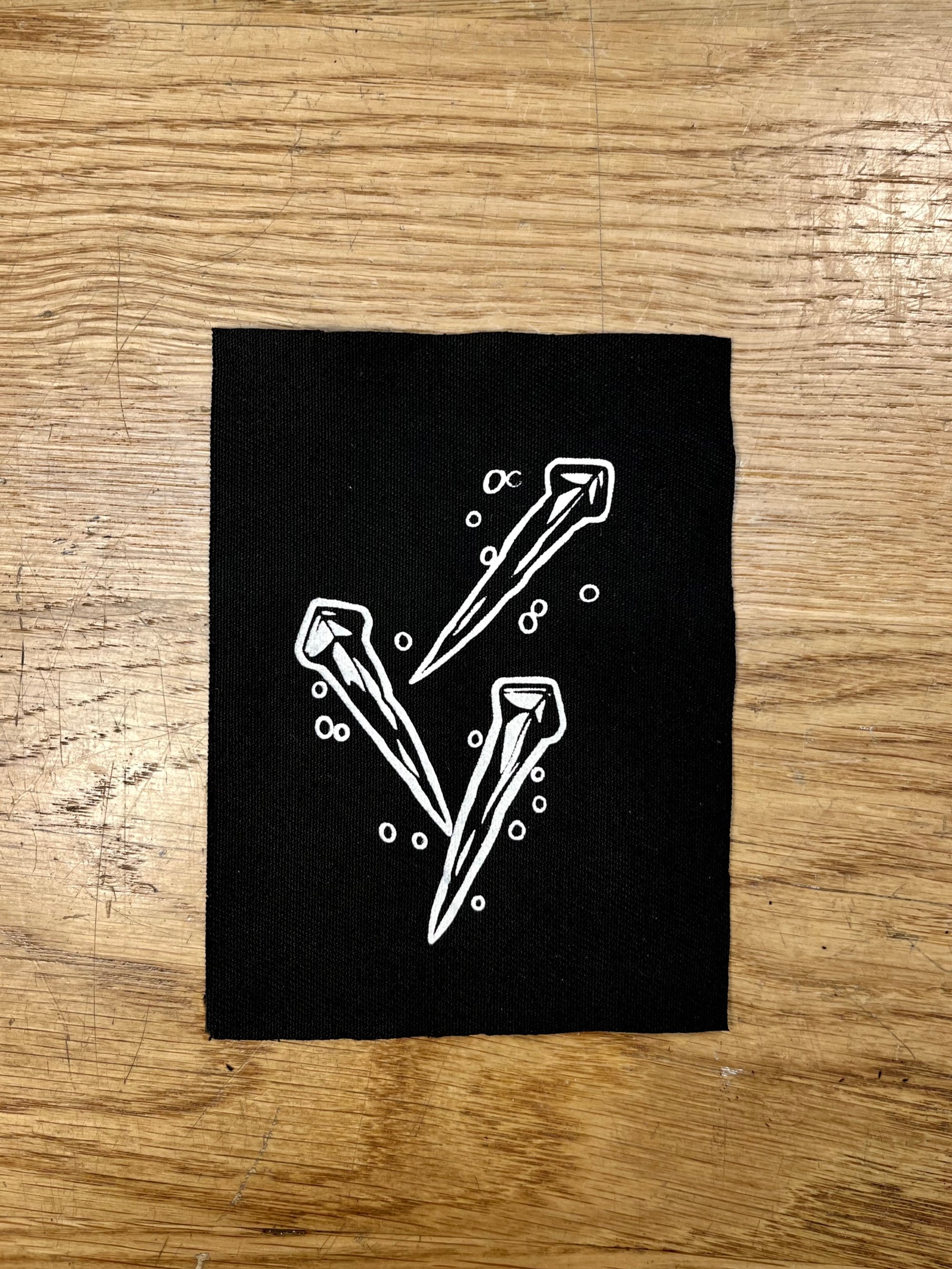 The "Coffin Nails" patch is printed on black 100% cotton fabric and is pre-washed. Everything is done by myself and the patches are screen printed. The patches can be washed in the washing machine at a low temperature. Price is per item.